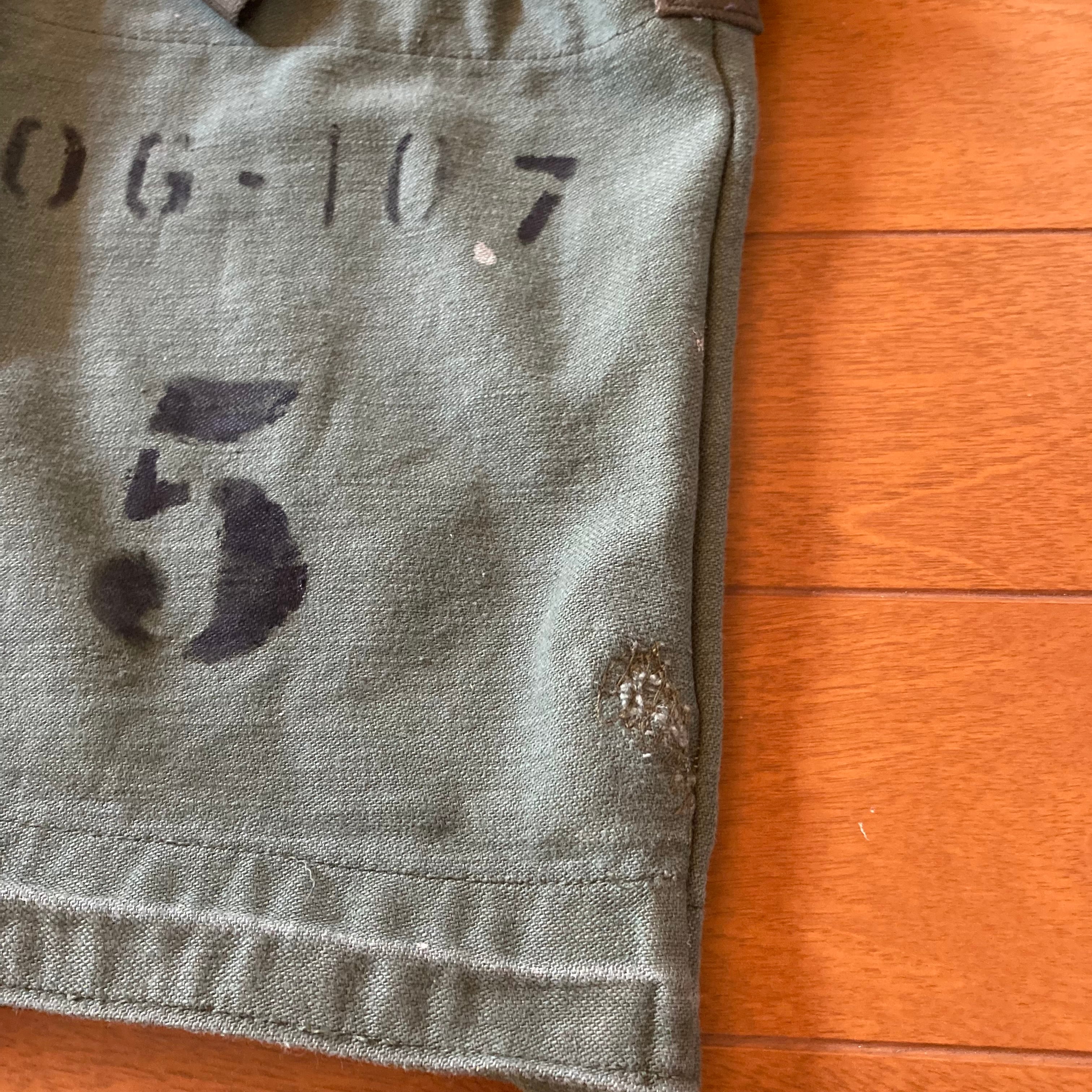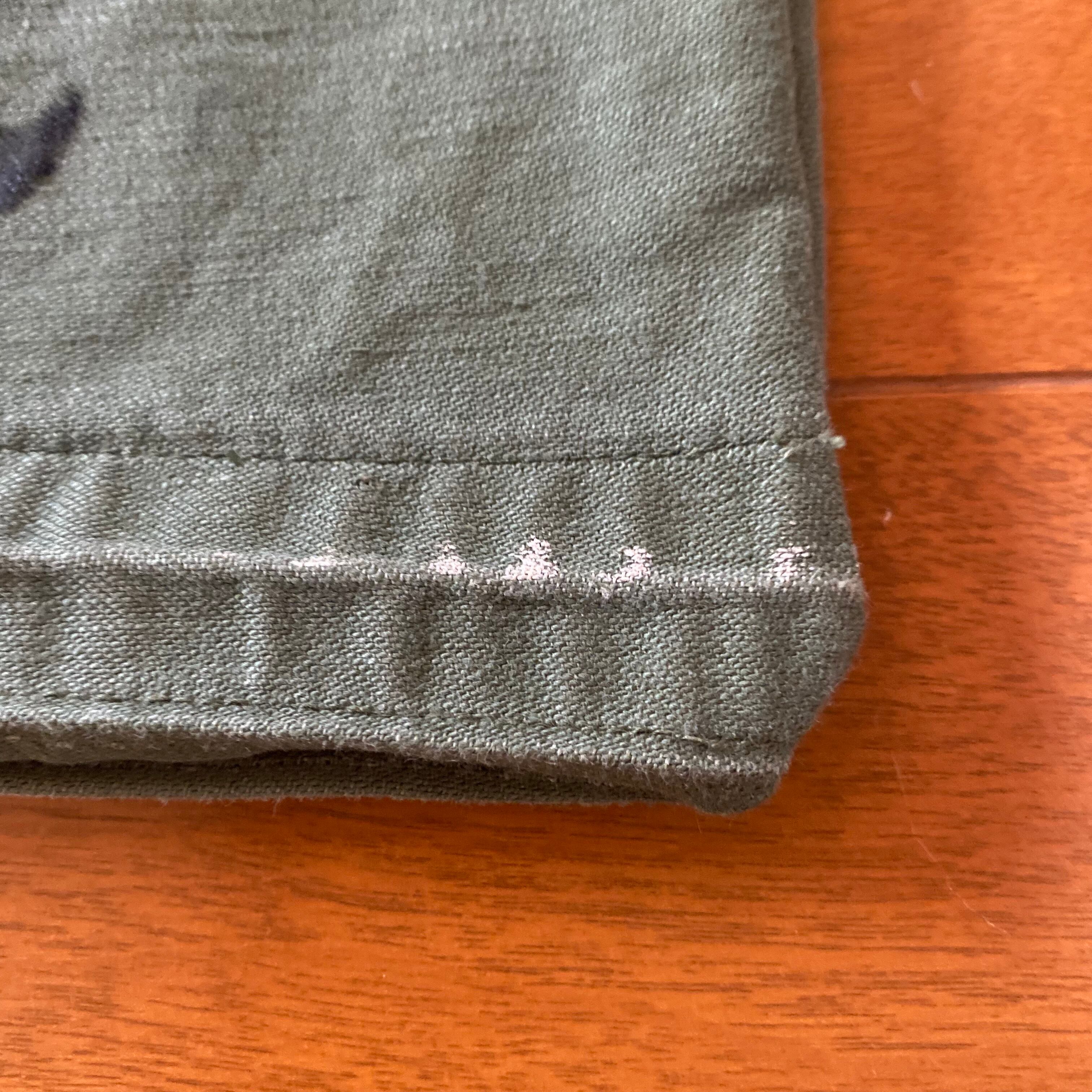 70年代のファティーグシャツを利用してミニバックにリワーク致しました。
