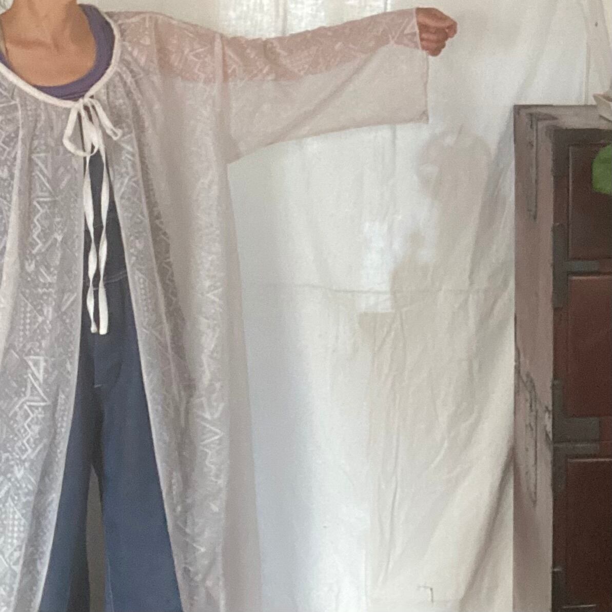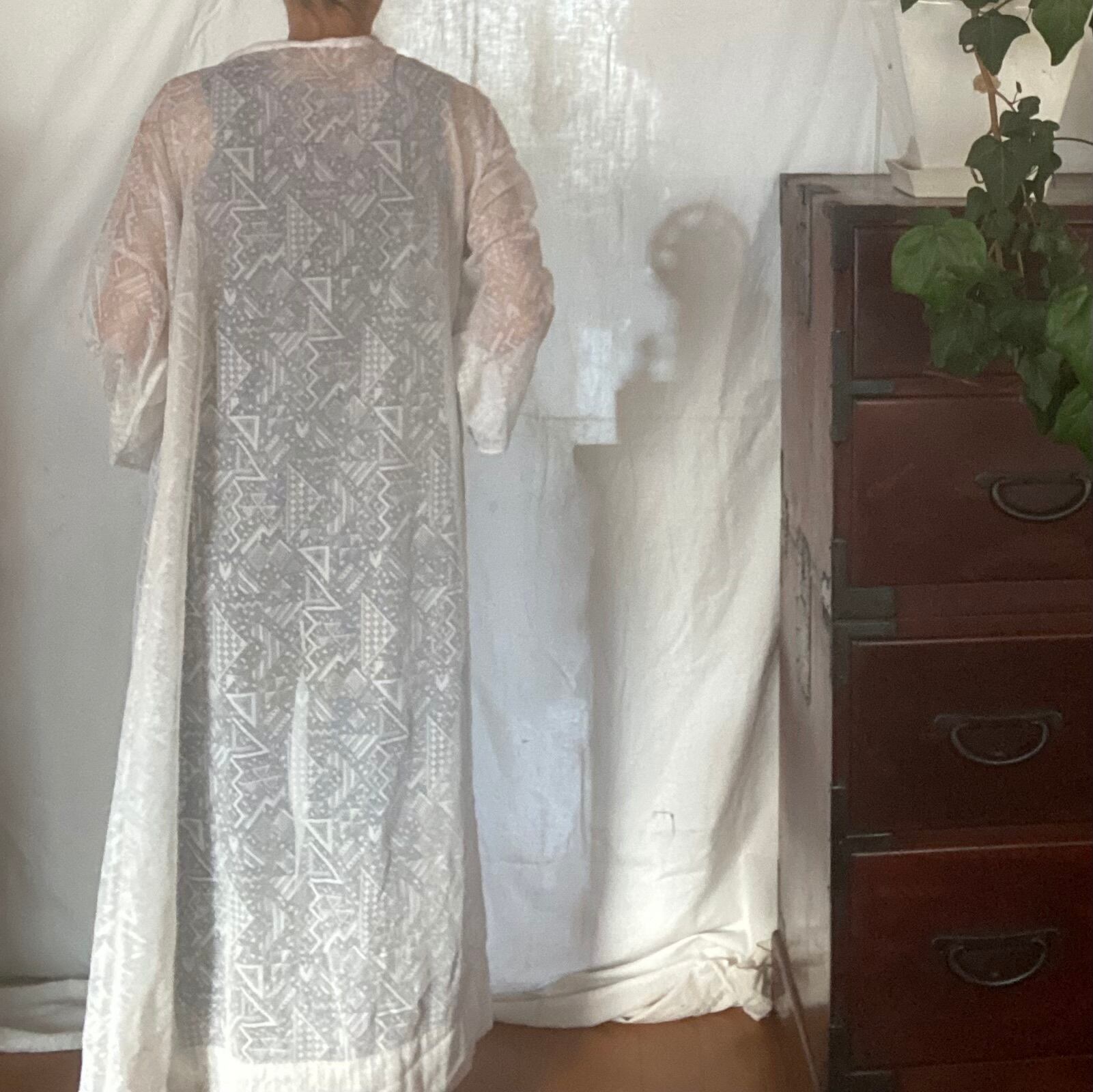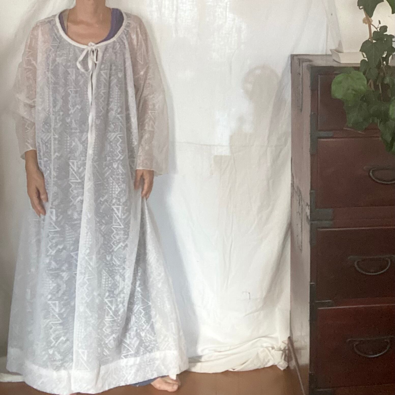 カーテン生地からロング丈のガウンドレスに仕上げました。
