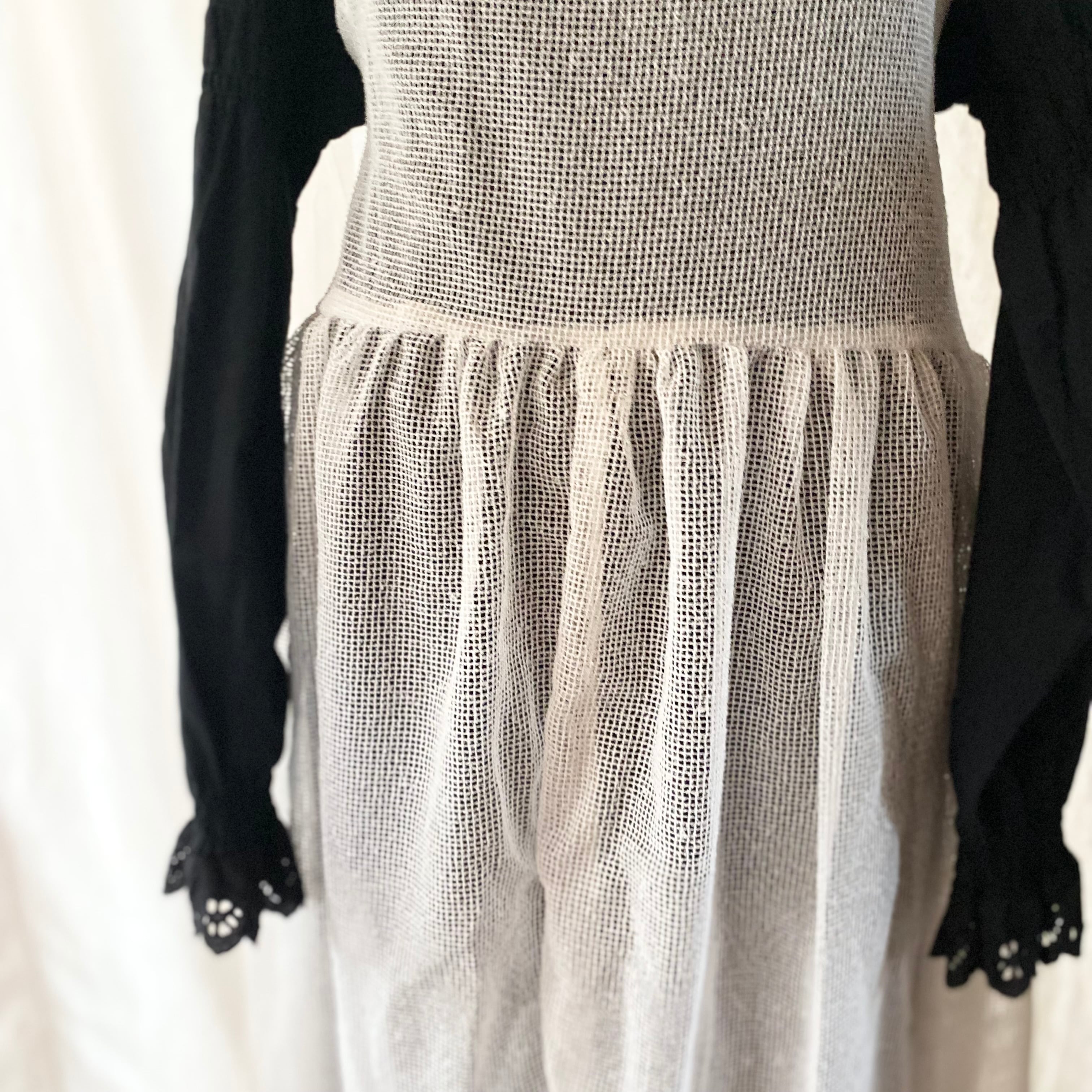 メッシュのカーテン生地からエプロンドレスへリワーク致しました。