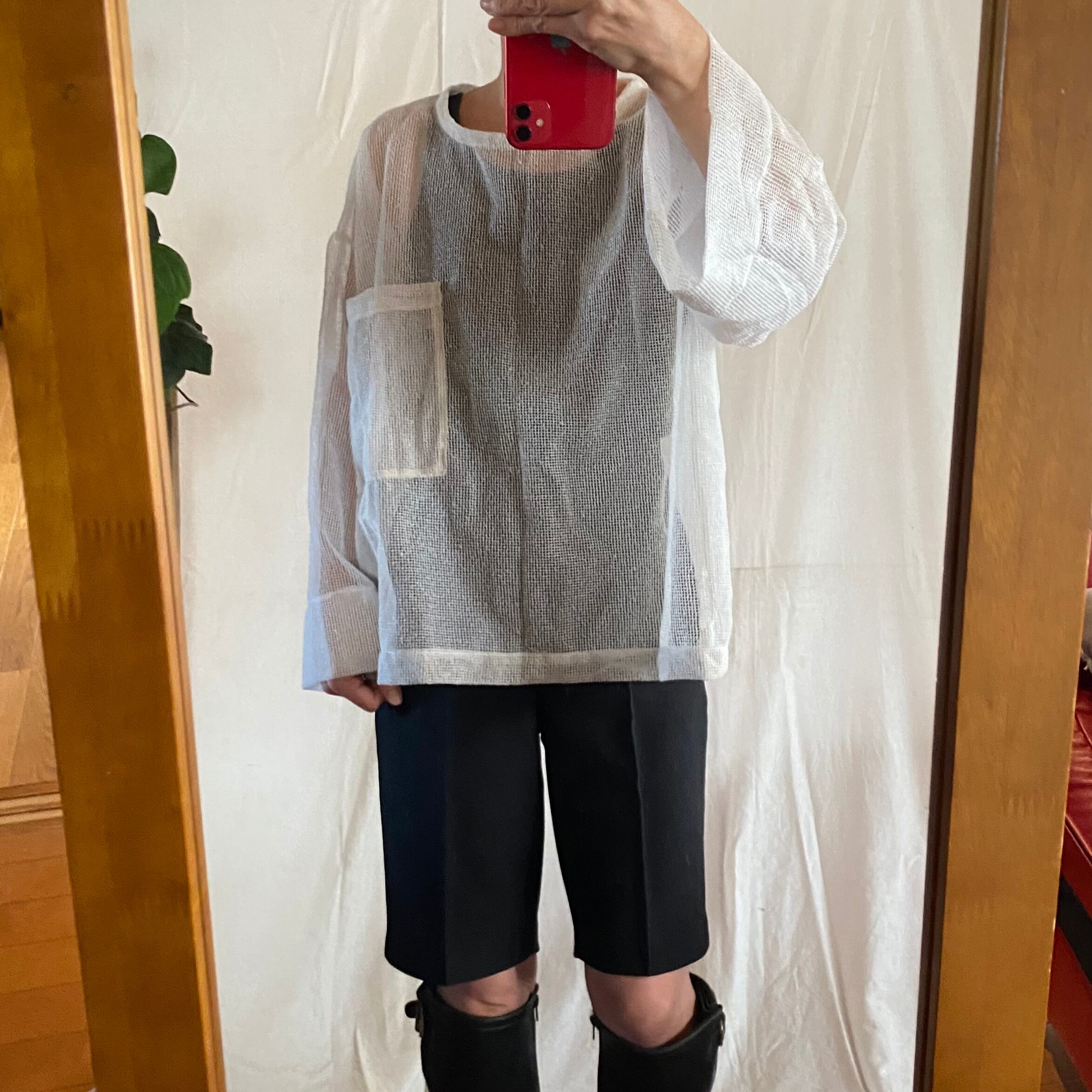 メッシュのカーテン生地からポケットシャツにリワーク