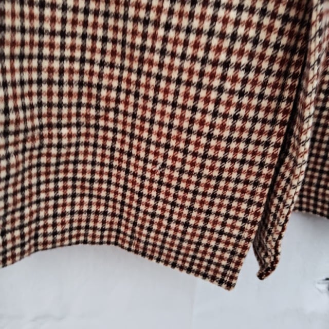 大きな丸型の愛らしいスラントポケット付くチェックジャケットになります。