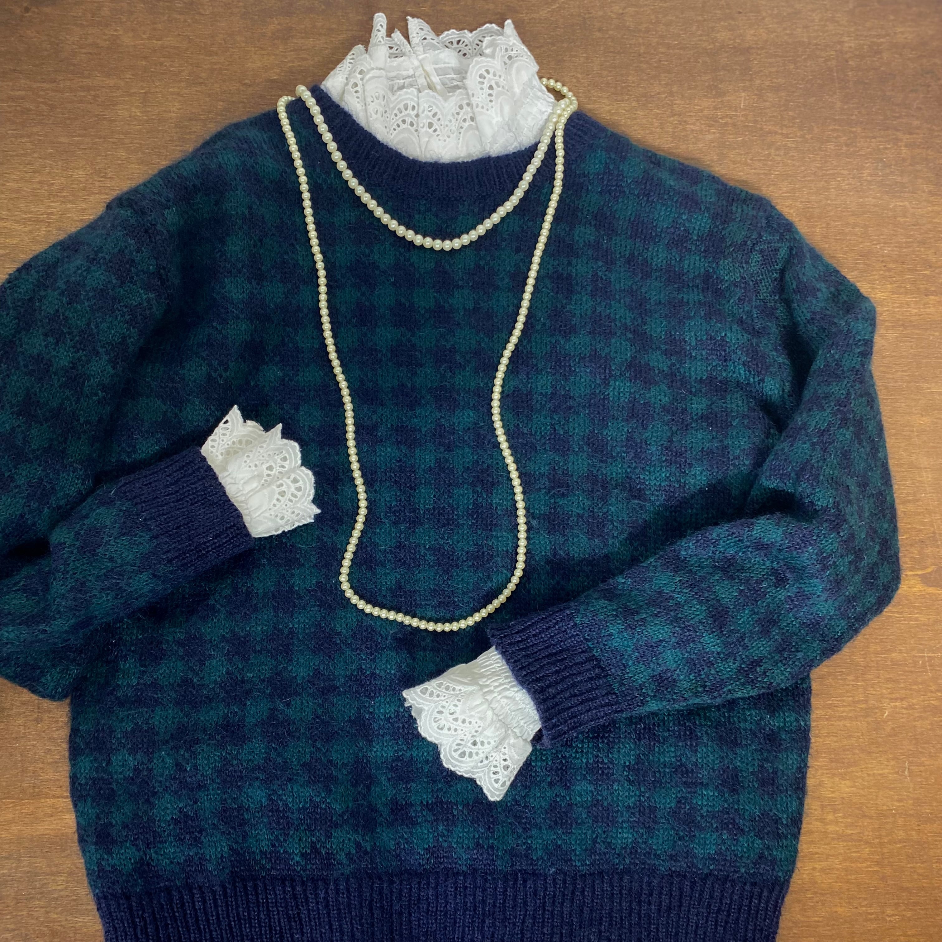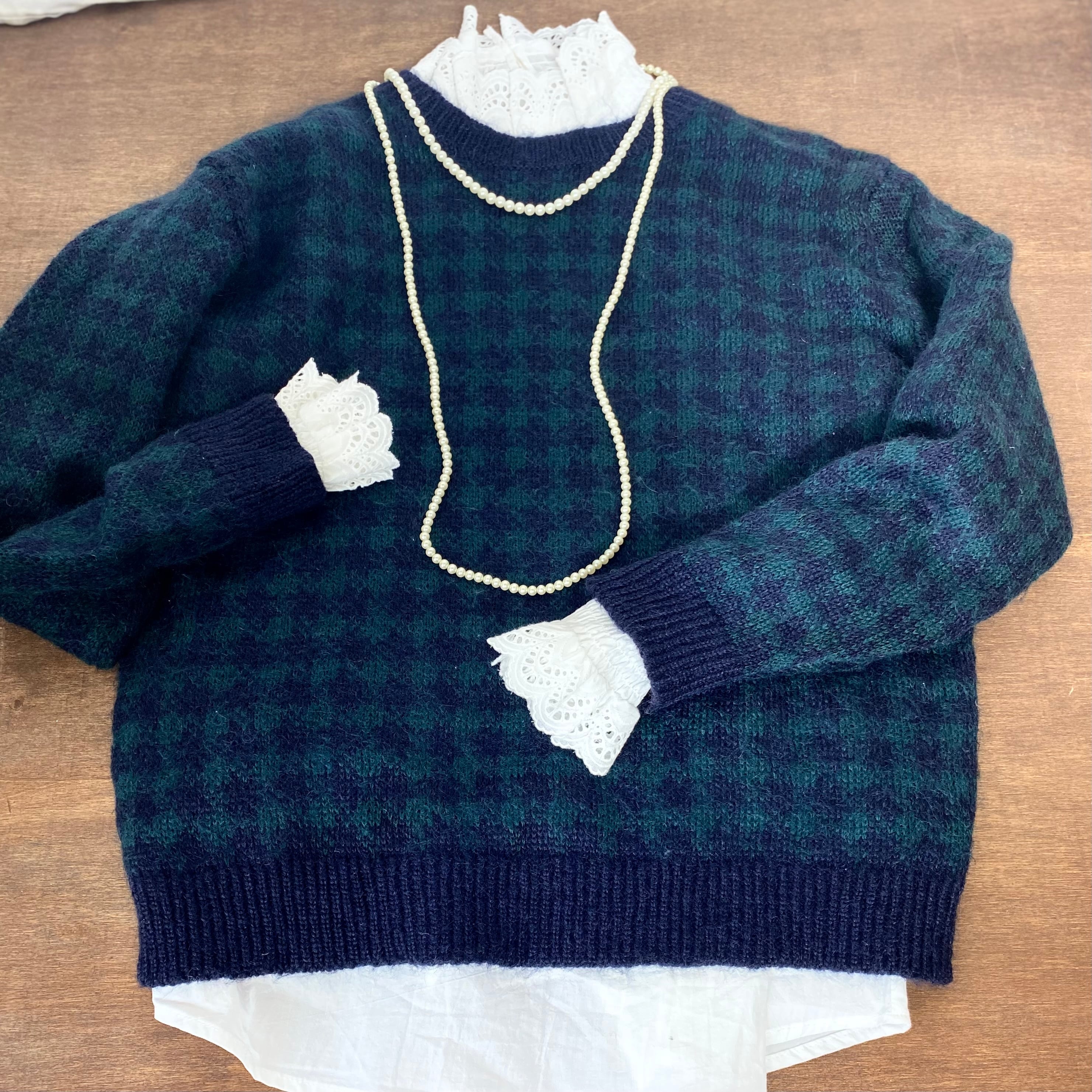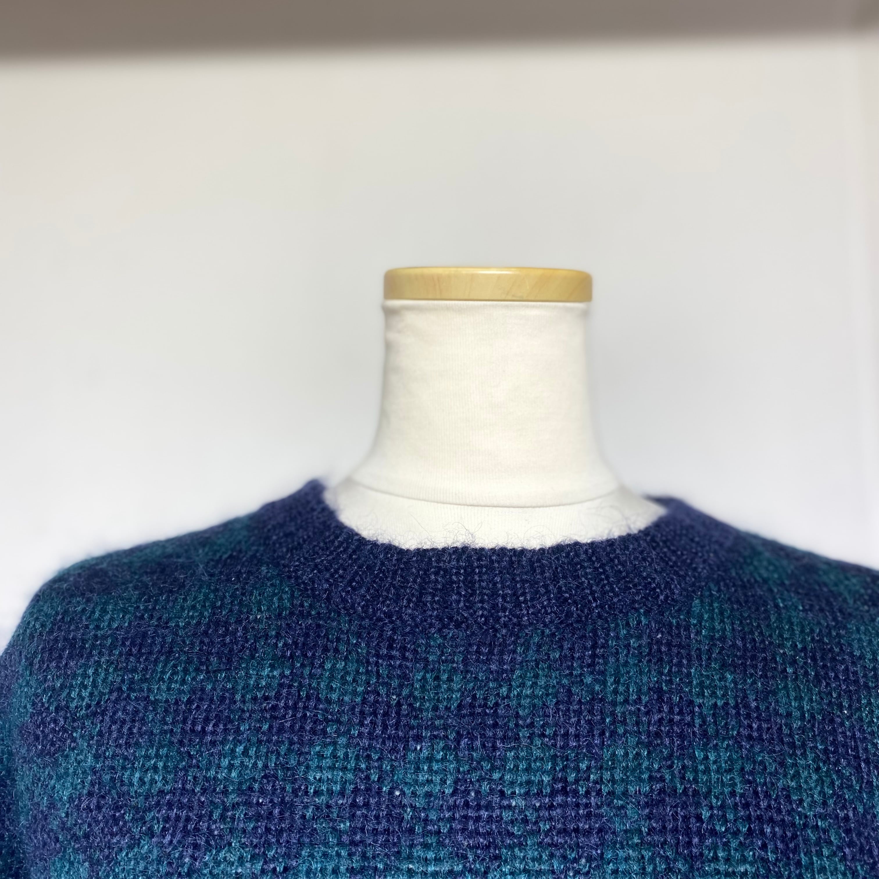 グリーンとネイビーの落ち着きあるチェックパターンで、