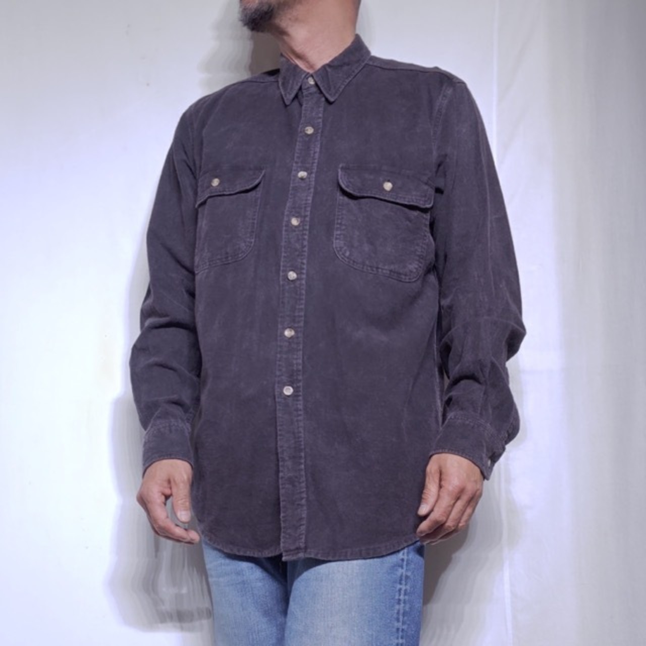 表面が起毛した厚手なコットンシャツとなります。