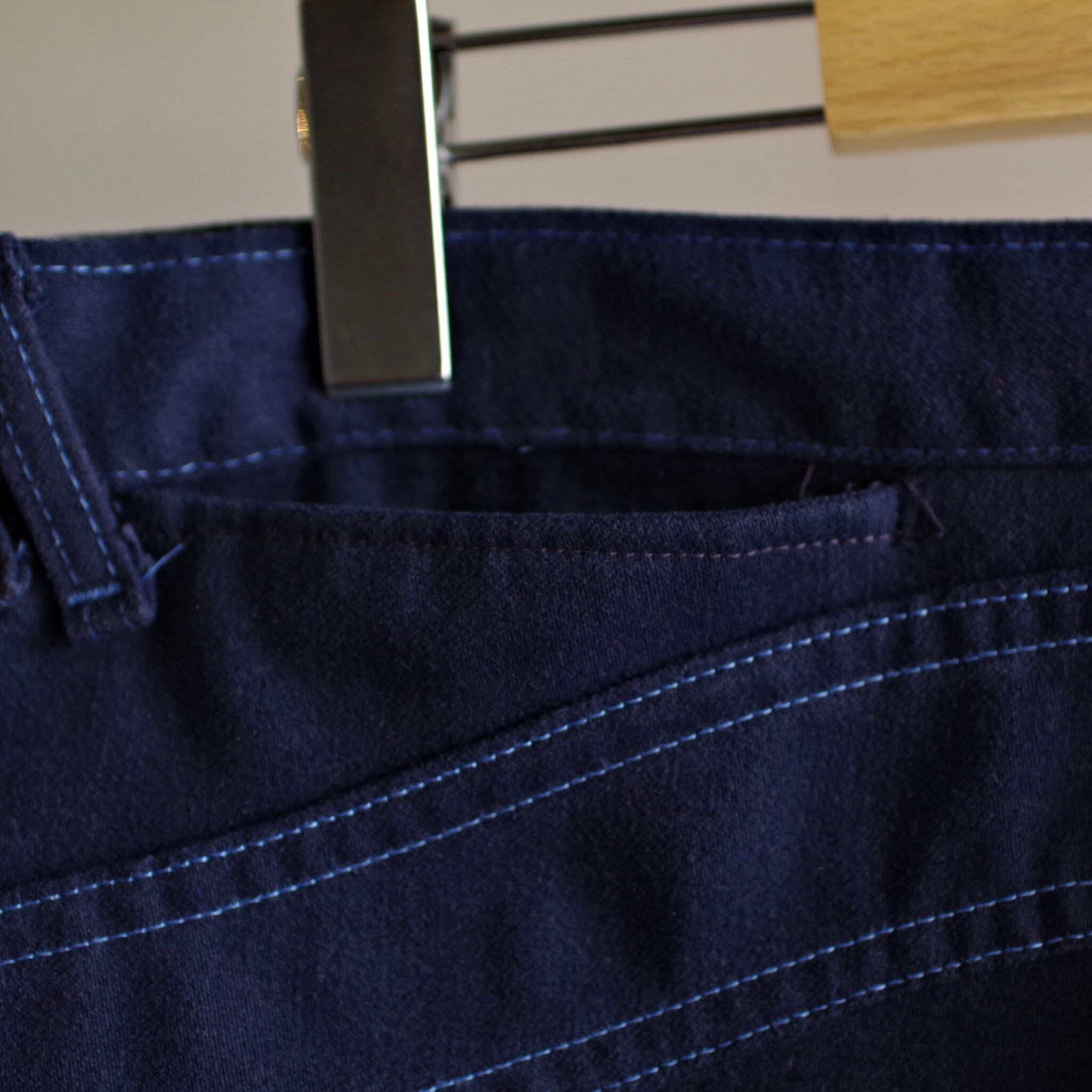 ウエストにボタンを一つ加えてw28程度で穿けるようにしてあります。