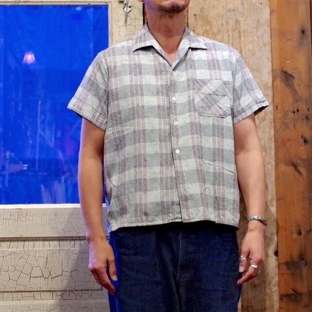 ~1960s Euro Open Collar Cotton Shirt / 50~60年代 ネップ入り コットンシャツ