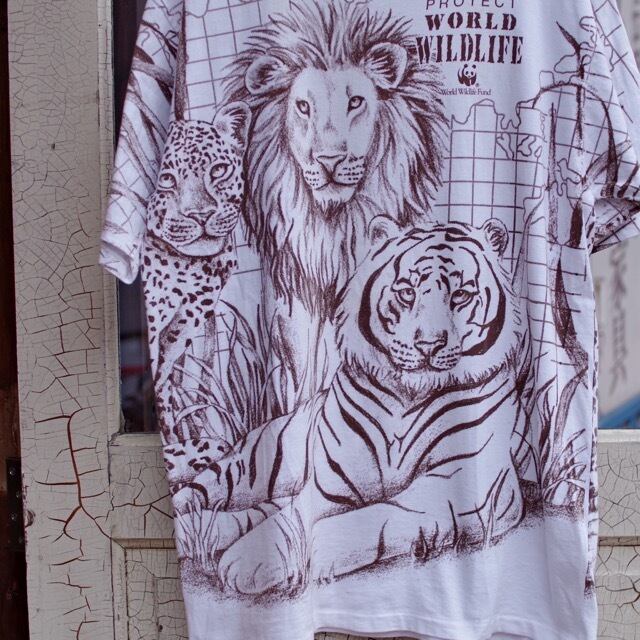 1990s Artex WWF Animal Print T-shirt / Lion Tiger Cheater? /アニマル 総柄 Tシャツ