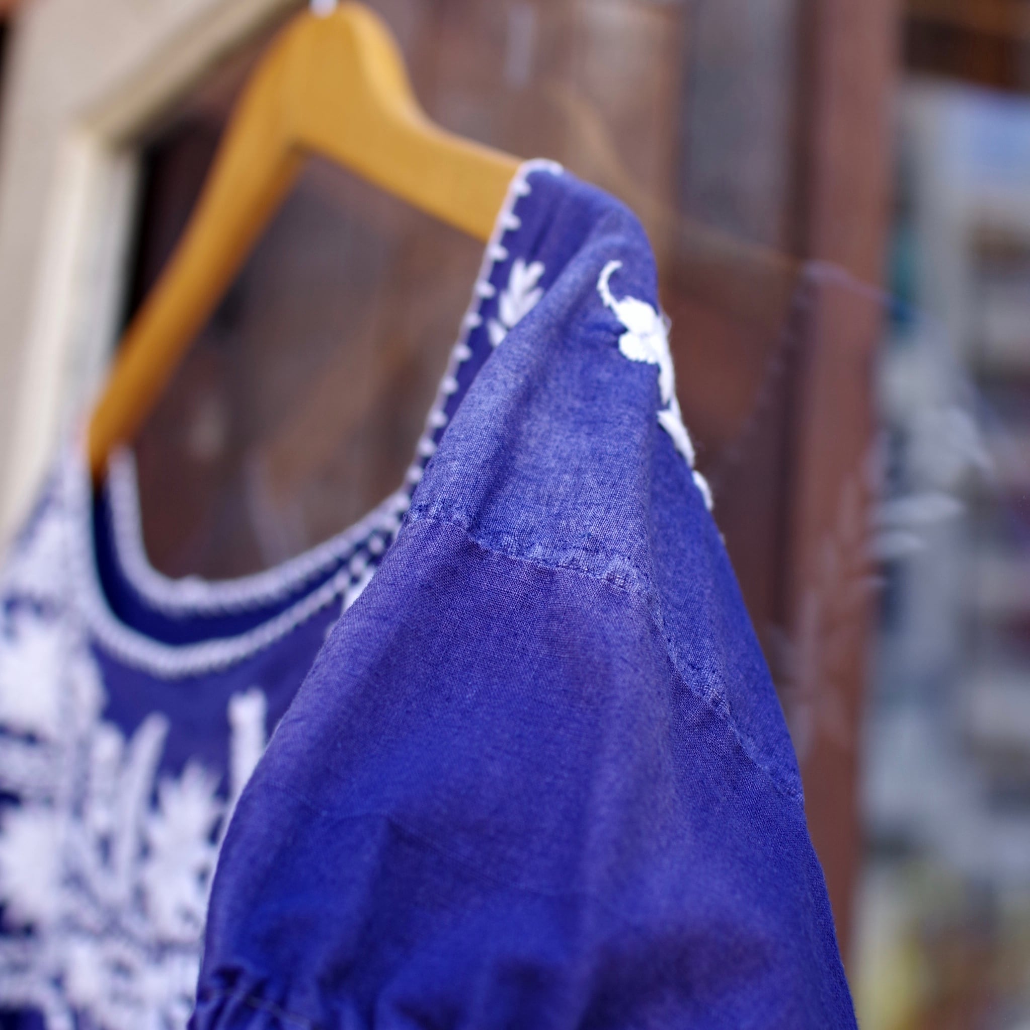 ネイビーベースに白の刺繍いりのメキシカンドレスになります。