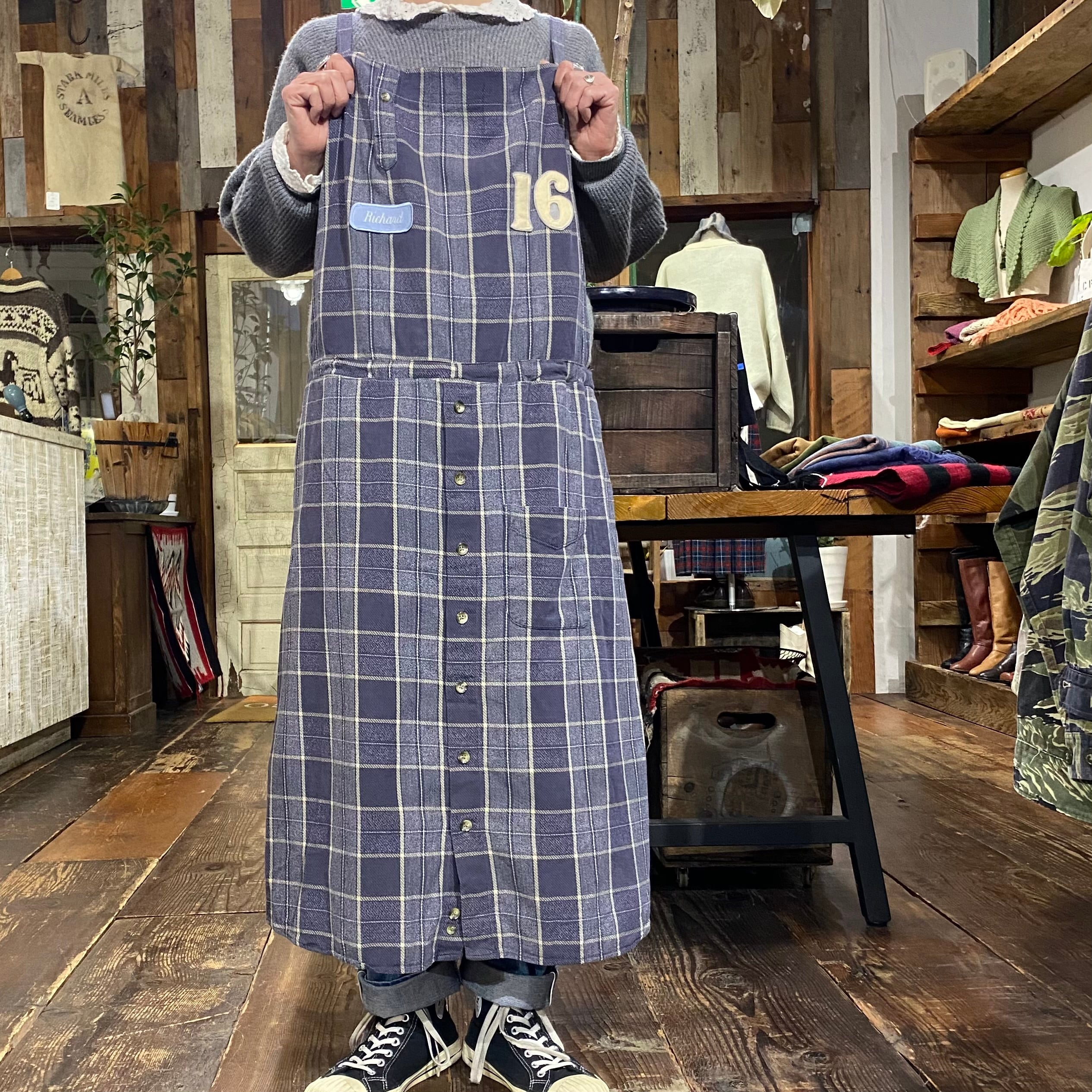 メンズのネルシャツから、エプロンドレスへリワークしました